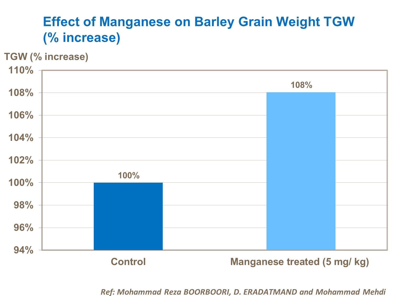 Research has demonstrated that the micronutrients zinc, copper, manganese and boron have all increased the Thousand Grain Weight (TGW) in barley .